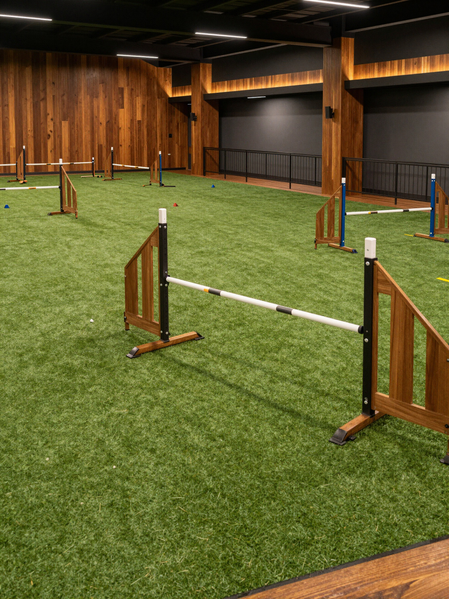 3,000 sq ft climate-controlled training room featuring high-traction K9 rubber flooring for impact protection and year-round focus.
